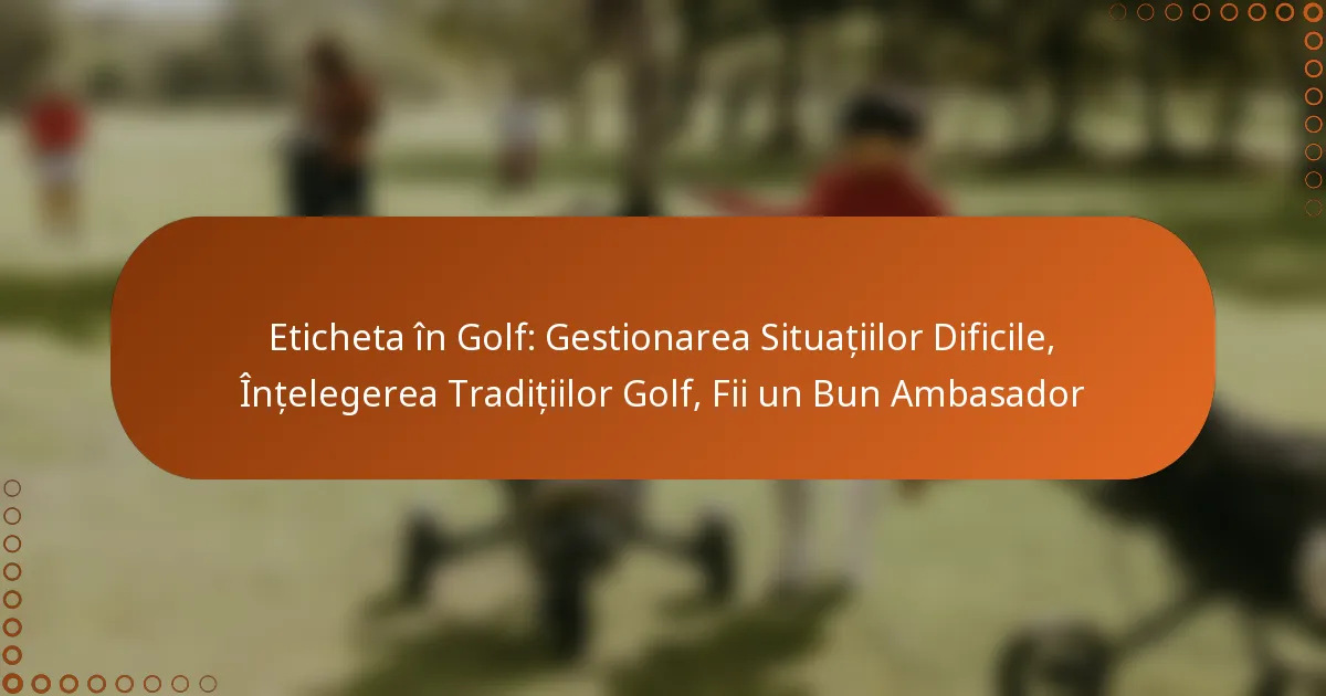 Eticheta în Golf: Gestionarea Situațiilor Dificile, Înțelegerea Tradițiilor Golf, Fii un Bun Ambasador