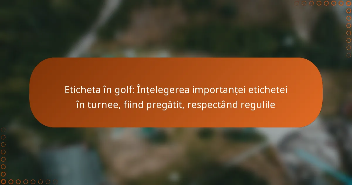 Eticheta în golf: Înțelegerea importanței etichetei în turnee, fiind pregătit, respectând regulile